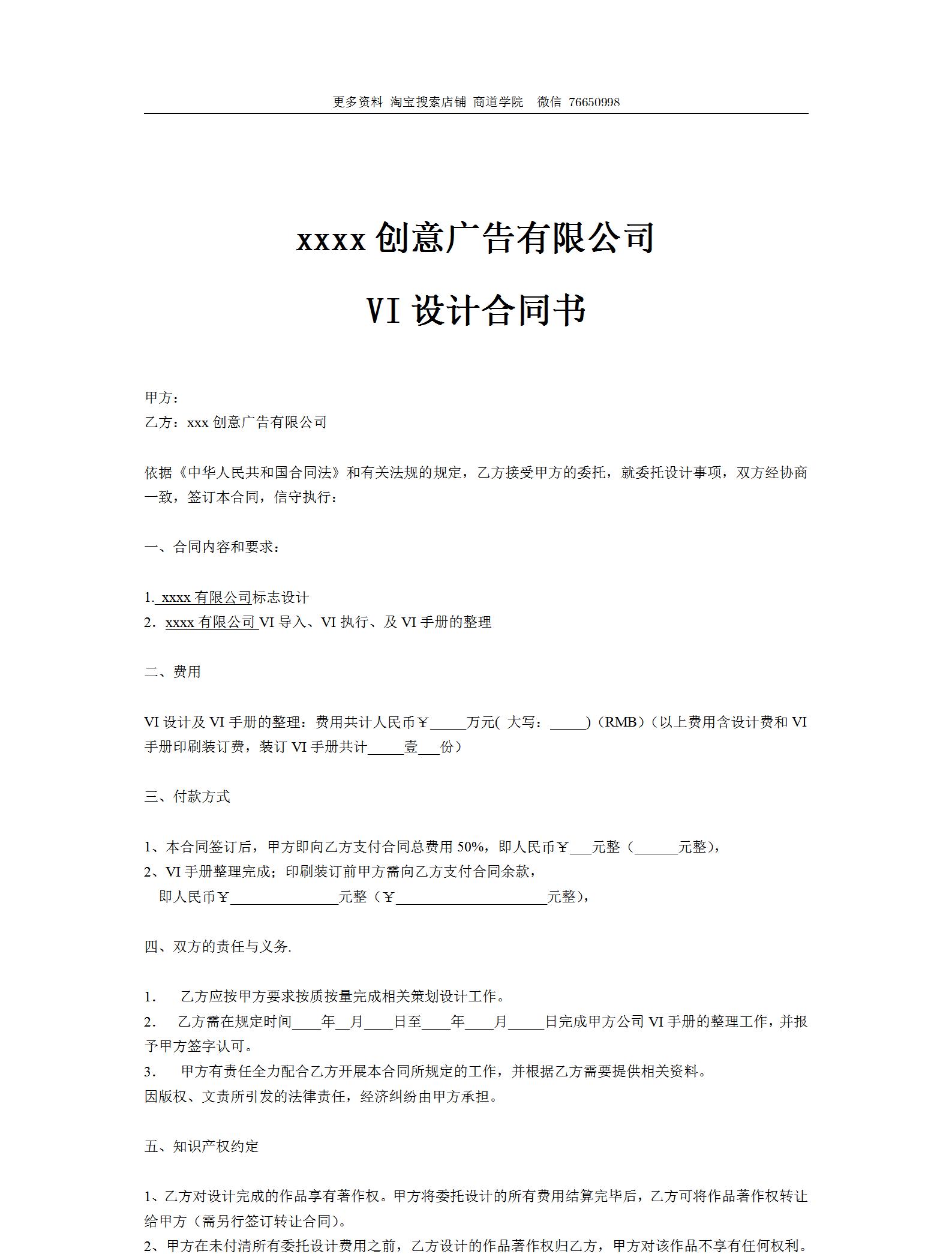 甲方: 乙方:xxx创意广告有限公司 依据《中华人民共和国合同法》和有关法规的规定,乙方接受甲方的委托,就委托设计事项,双方经协商一致,签订本合同,信守执行: